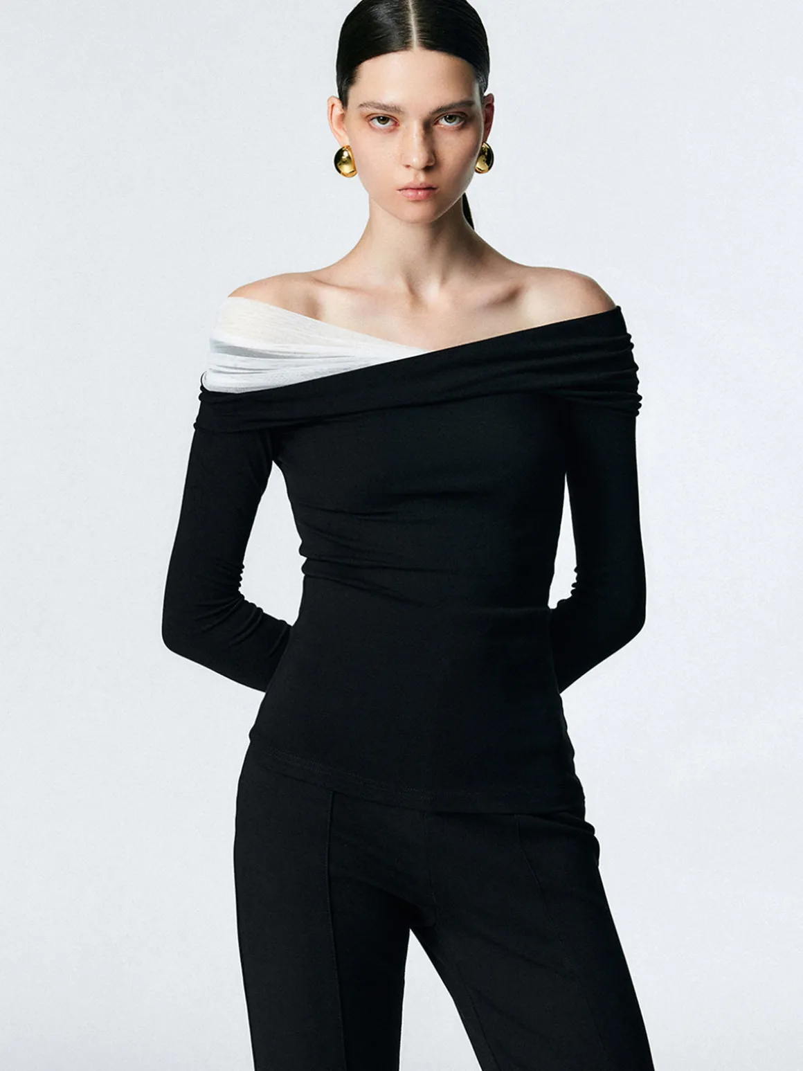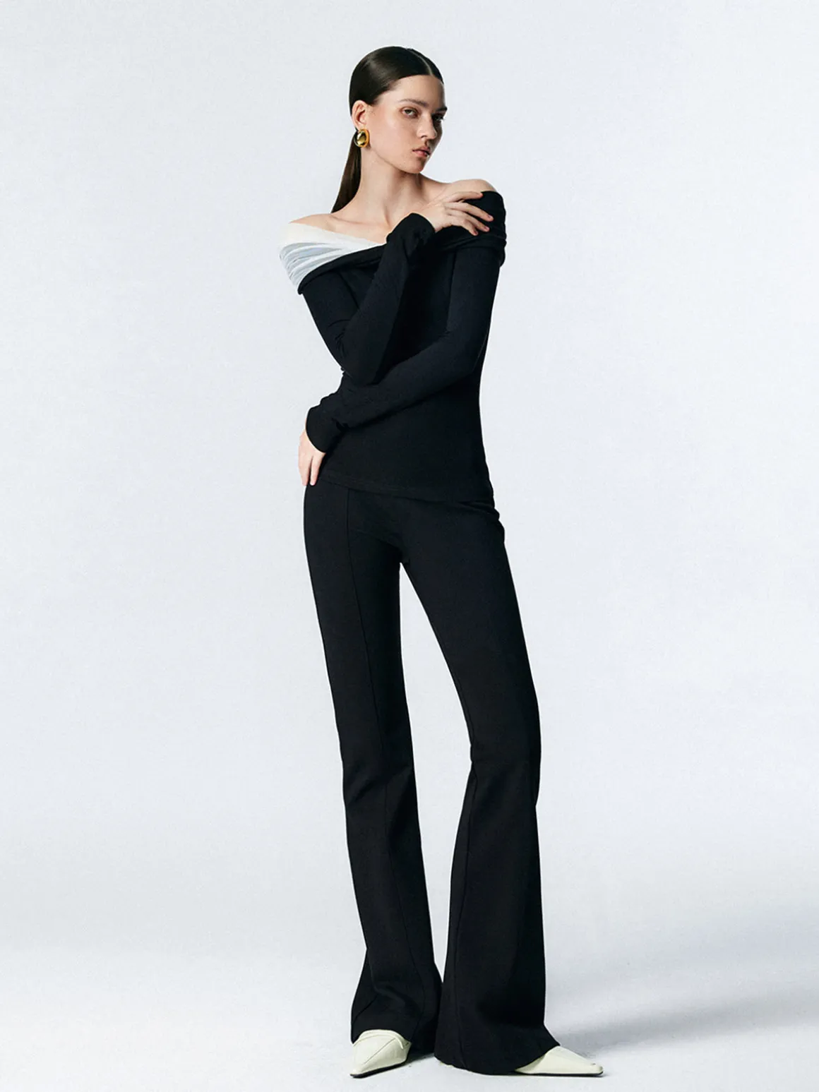 - Neckline: Straight neck
